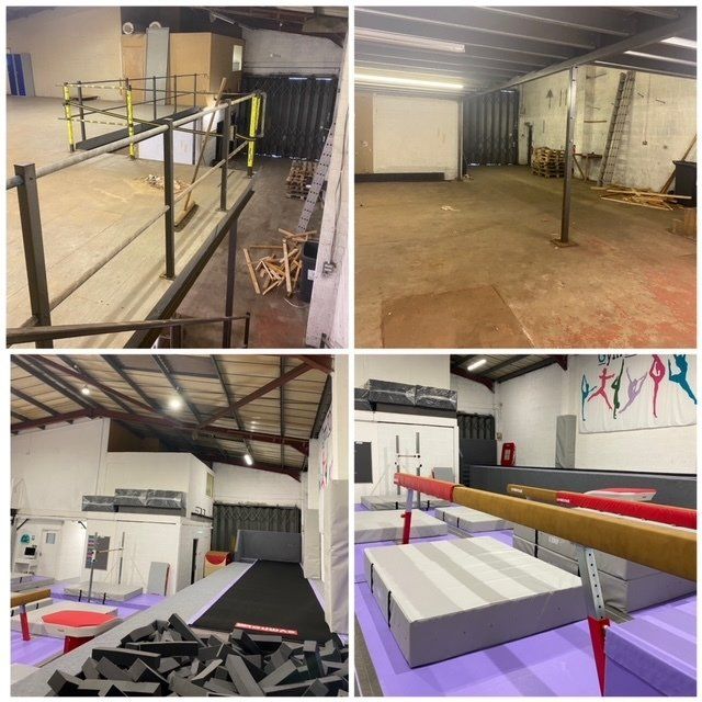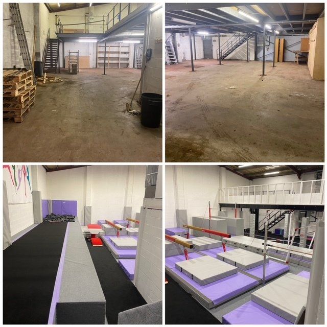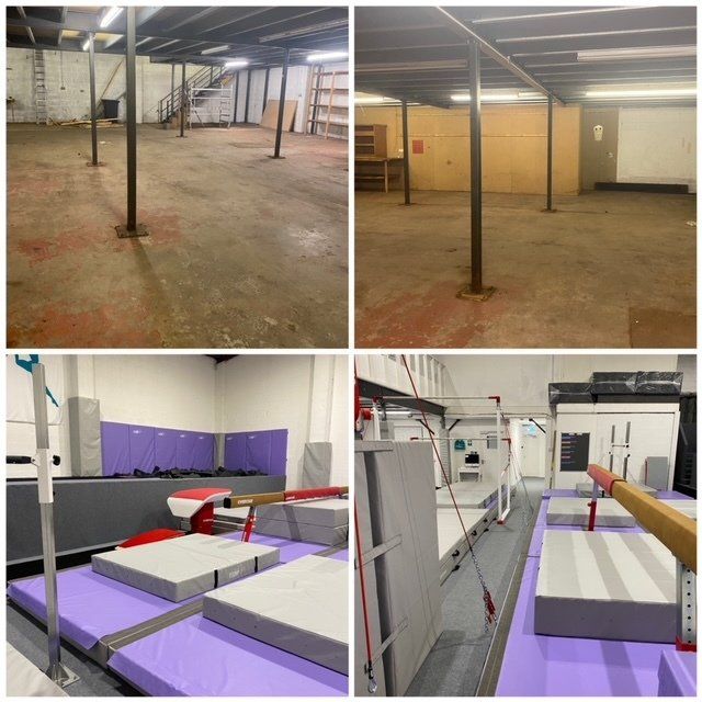 In January 2021 I got the keys for my new big adventure. The place was a mess, it needed so much doing, whole unit rewire, plumbing, plastering, painting, carpets, mezzanie removing, walls knocking down, the lot! All that was before i could start thinking about getting gymnastics equipment. I knew it would be hard work but I knew I was definitely one for the job. I spent 9 months putting money into the biggest risk of my life to get this unit ready. I did have some equipment already but, as you can probably tell, I like to go big which is why i wanted it to look the best it could, with the best equipment providers in the world.